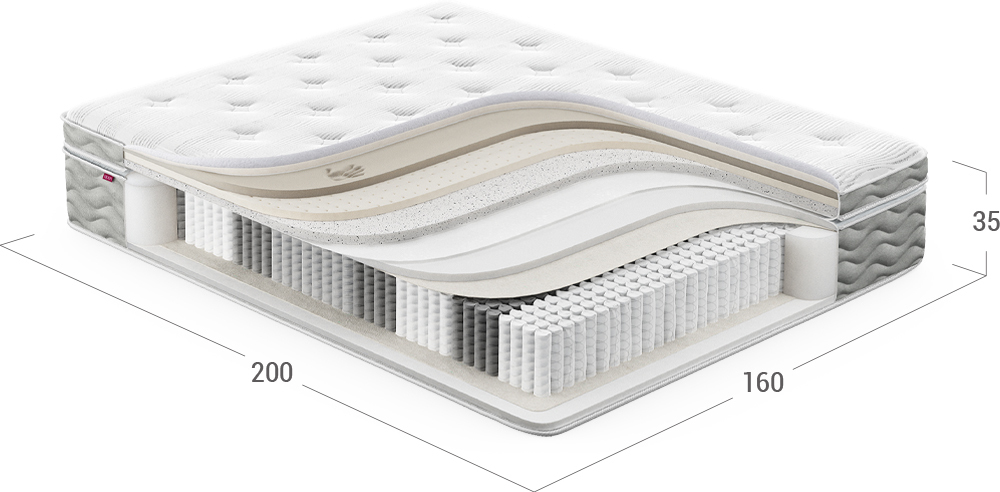 Поглощает вибрации, снижает колебания, обеспечивает индивидуальный комфорт каждому спящему во время совместного сна.