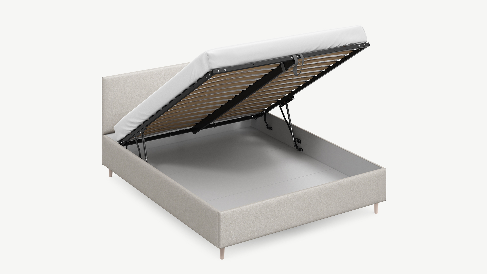 • Скрытая под основанием вместительная емкость без внутренних перегородок позволяет использовать всю площадь подкроватного пространства для хранения вещей.
