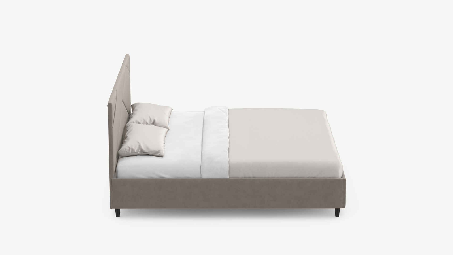 Элегантным и практичным акцентом служат скрытые карманы, расположенные по его углам. Лаконичные формы объемных царг создают единый гармоничный образ и фокусируют внимание на центральном текстурном элементе кровати.
