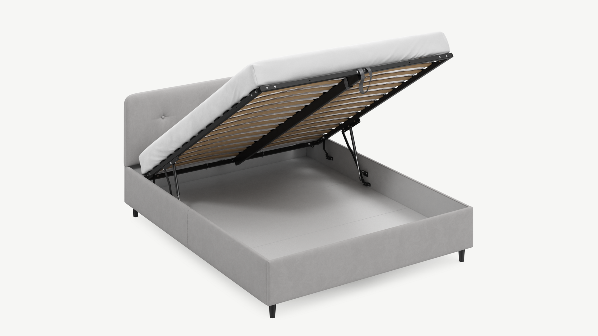 - Скрытая под основанием вместительная емкость без внутренних перегородок позволяет использовать всю площадь подкроватного пространства для хранения вещей.