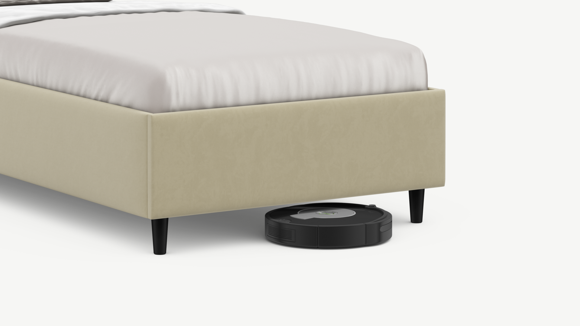 Благодаря высоким опорам под кроватью проходит робот-пылесос и легко проводится влажная уборка, что обеспечивает чистоту и порядок в доме.