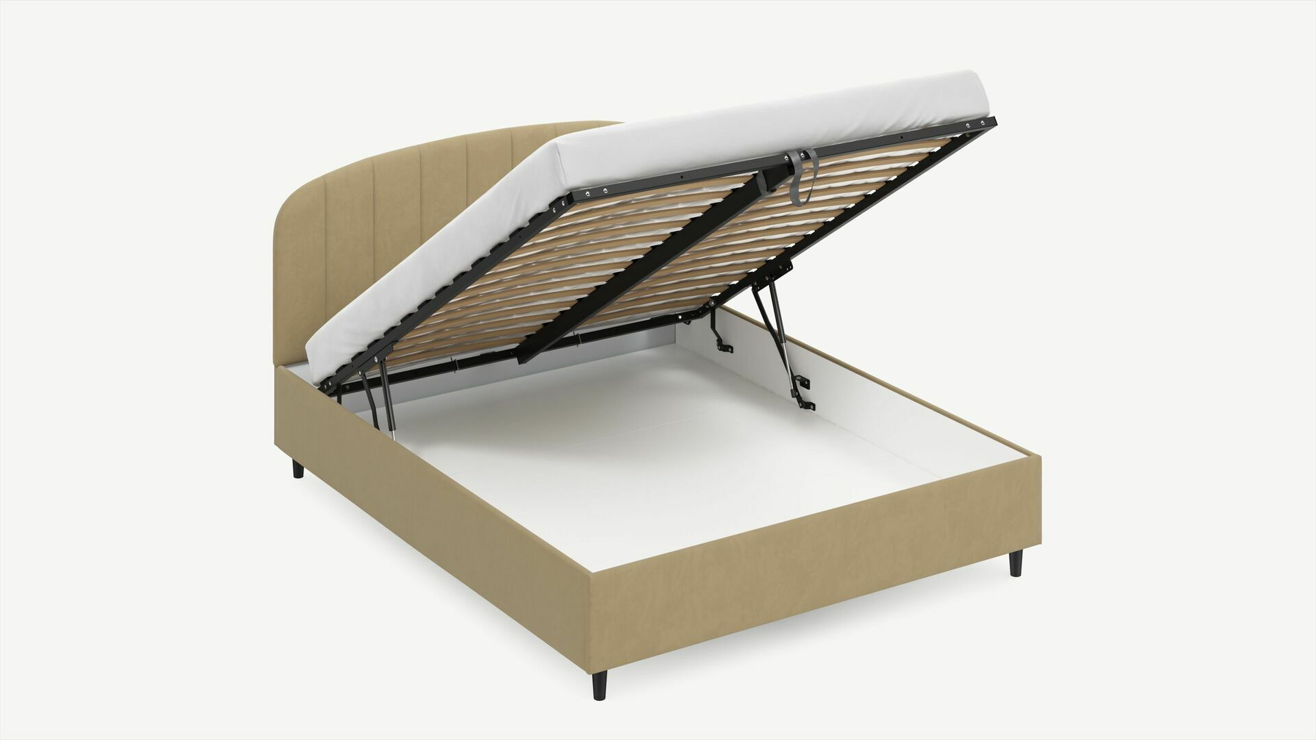 • Скрытая под основанием вместительная емкость без внутренних перегородок позволяет использовать всю площадь подкроватного пространства для хранения вещей.