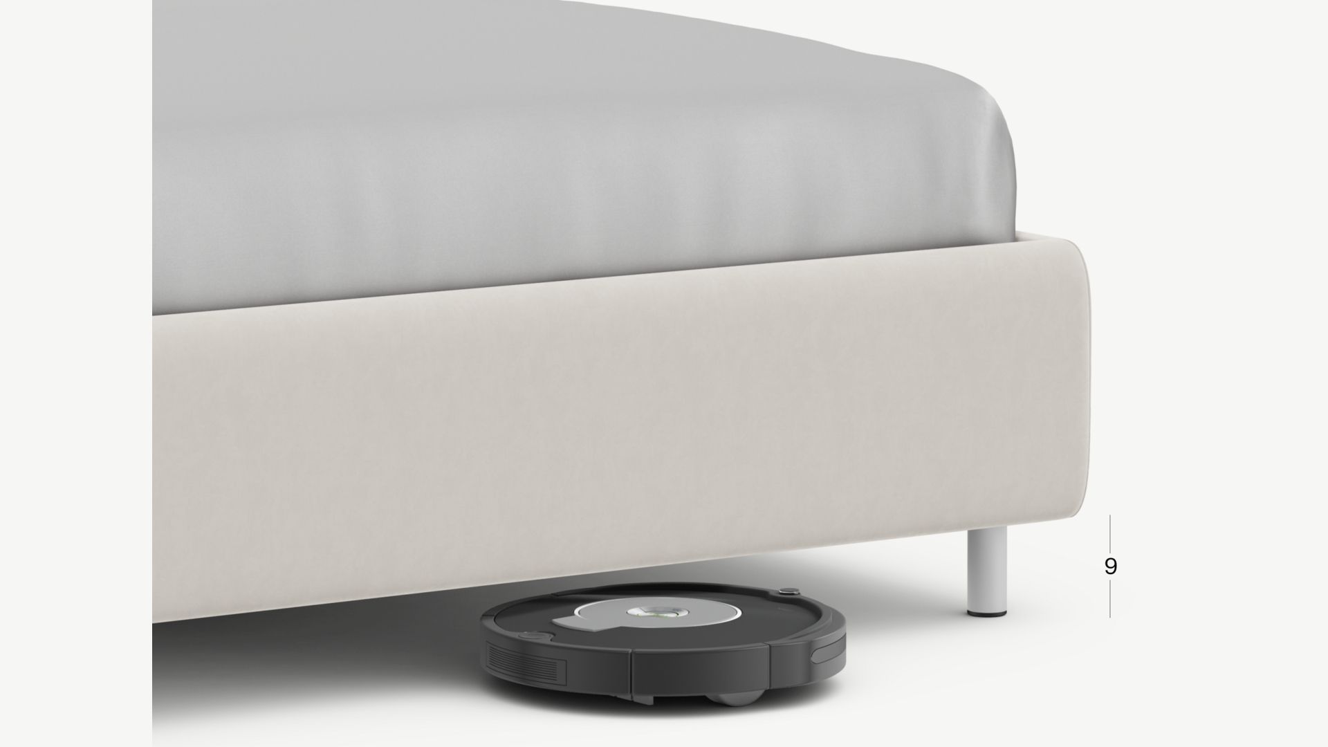 Высокие металлические опоры создают над полом достаточный просвет для движения робота-пылесоса, что помогает поддерживать чистоту и порядок в доме.