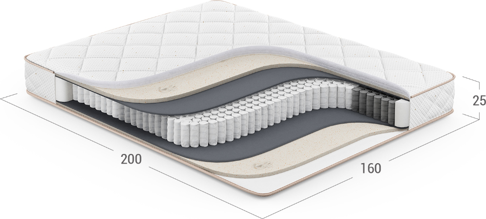 Повышает жесткость и плотность спального места, а также обеспечивает оптимальный воздухообмен благодаря объемной структуре материала. Улучшает эксплуатационные показатели матраса, не давая пружинному блоку механически воздействовать на комфортные слои.